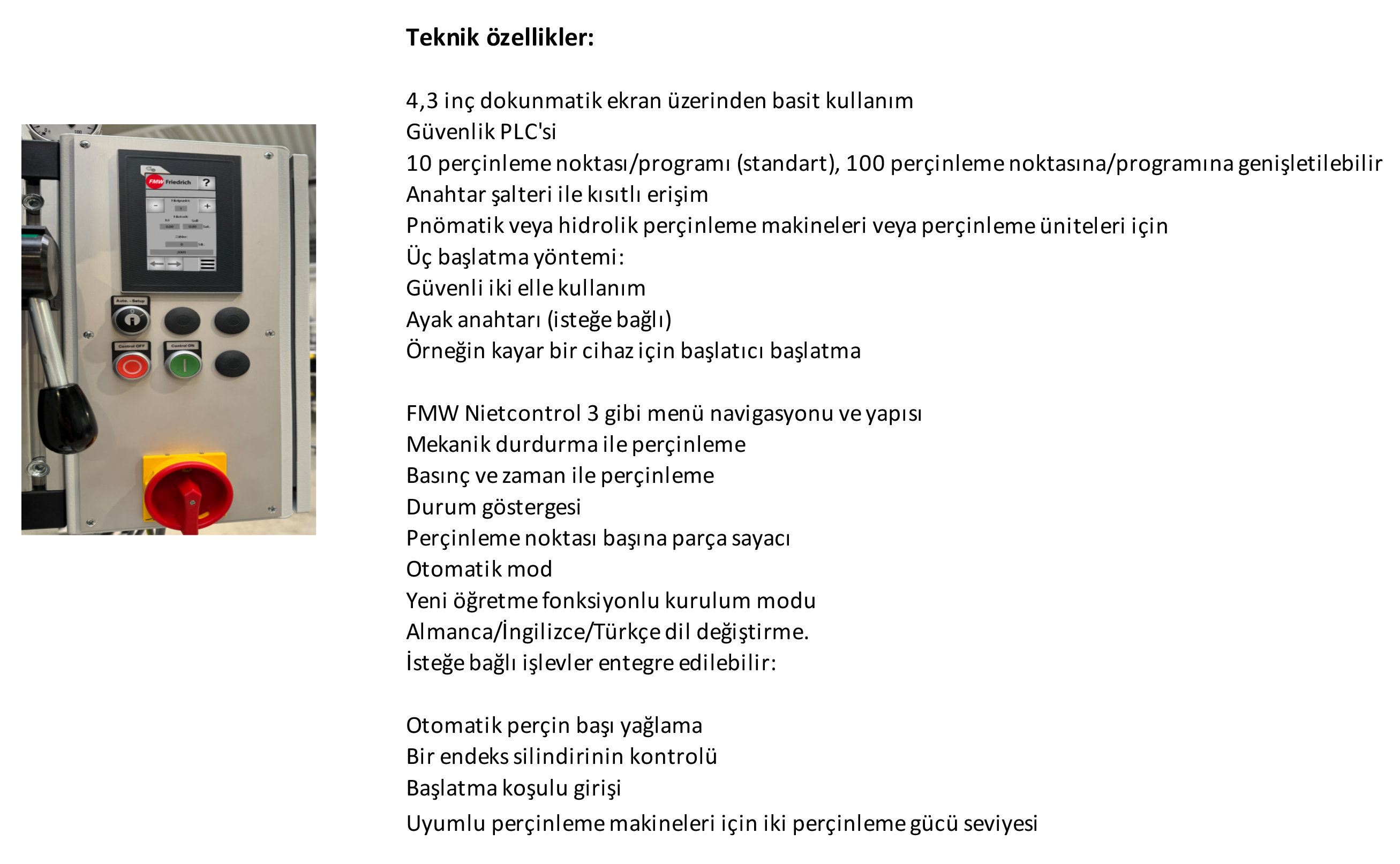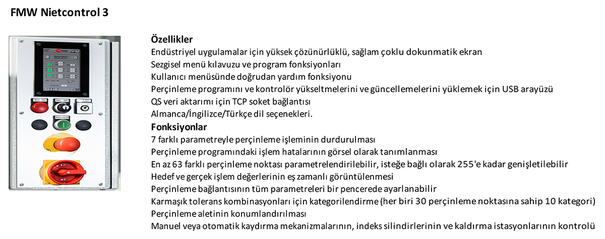 Ölçüm sistemiyle perçinleme makineleri ve perçinleme üniteleri için genişletilebilir kontrol